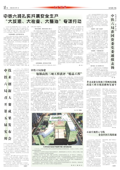 中铁六局扎实开展安全生产 “大反思、大检查、大整治”专项行动