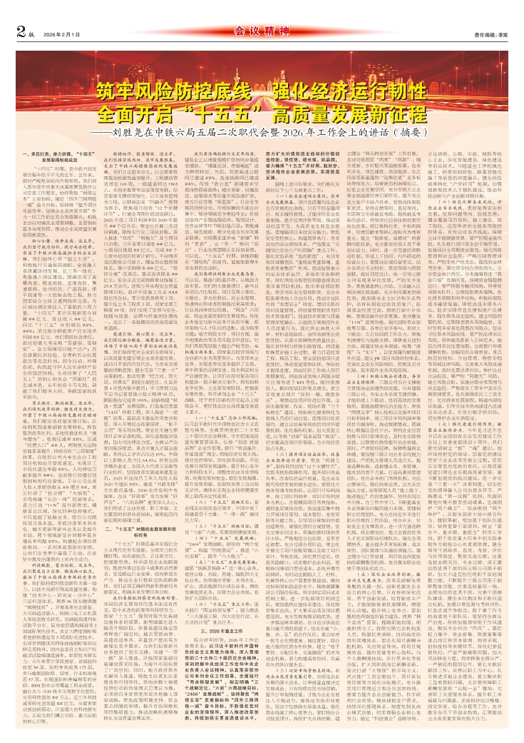 中铁六局召开五届二次职代会暨2026年工作会议