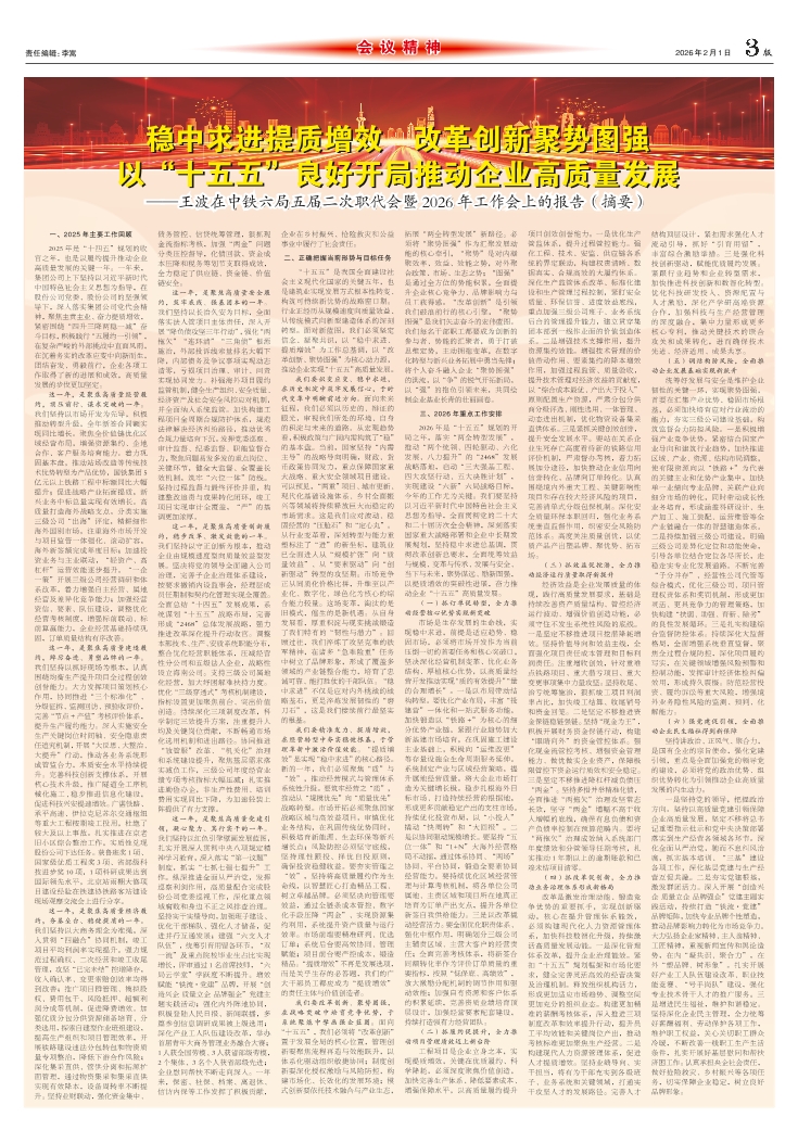 稳中求进提质增效 改革创新聚势图强 以“十五五”良好开局推动企业高质量发展